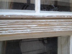 Die Holzfenster werden vor der Lackierung sorgfältig geschliffen und teilweise entlackt.